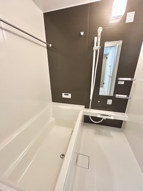 落ち着いた色味の浴室で1日の疲れをゆっくりと癒してください。