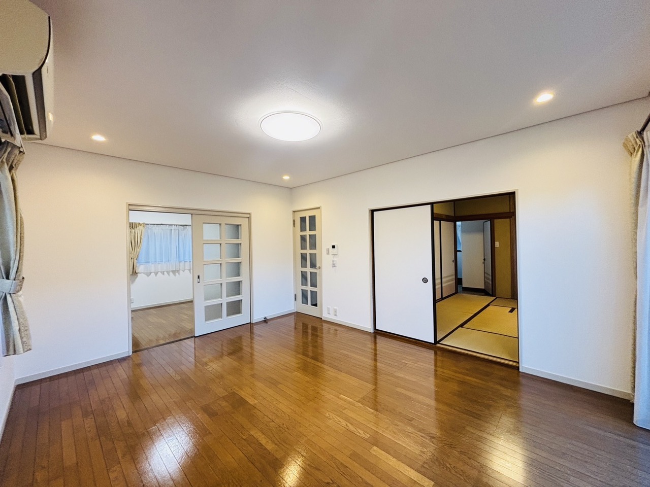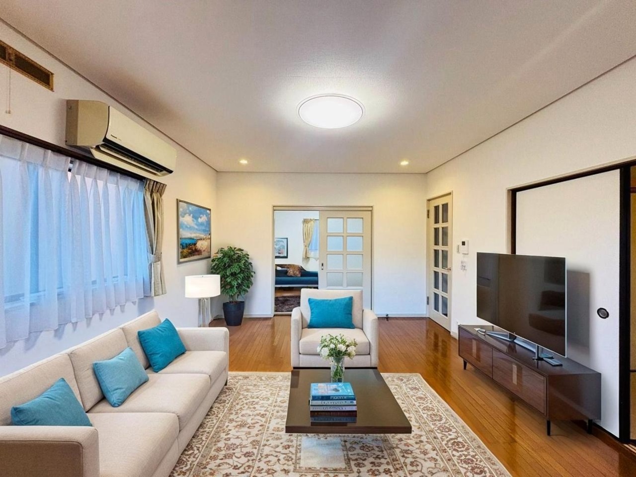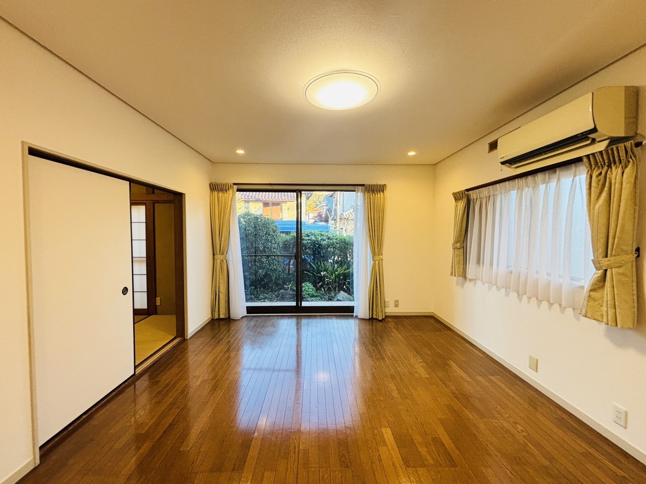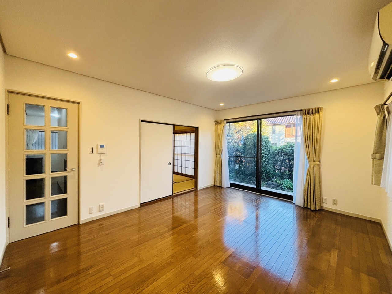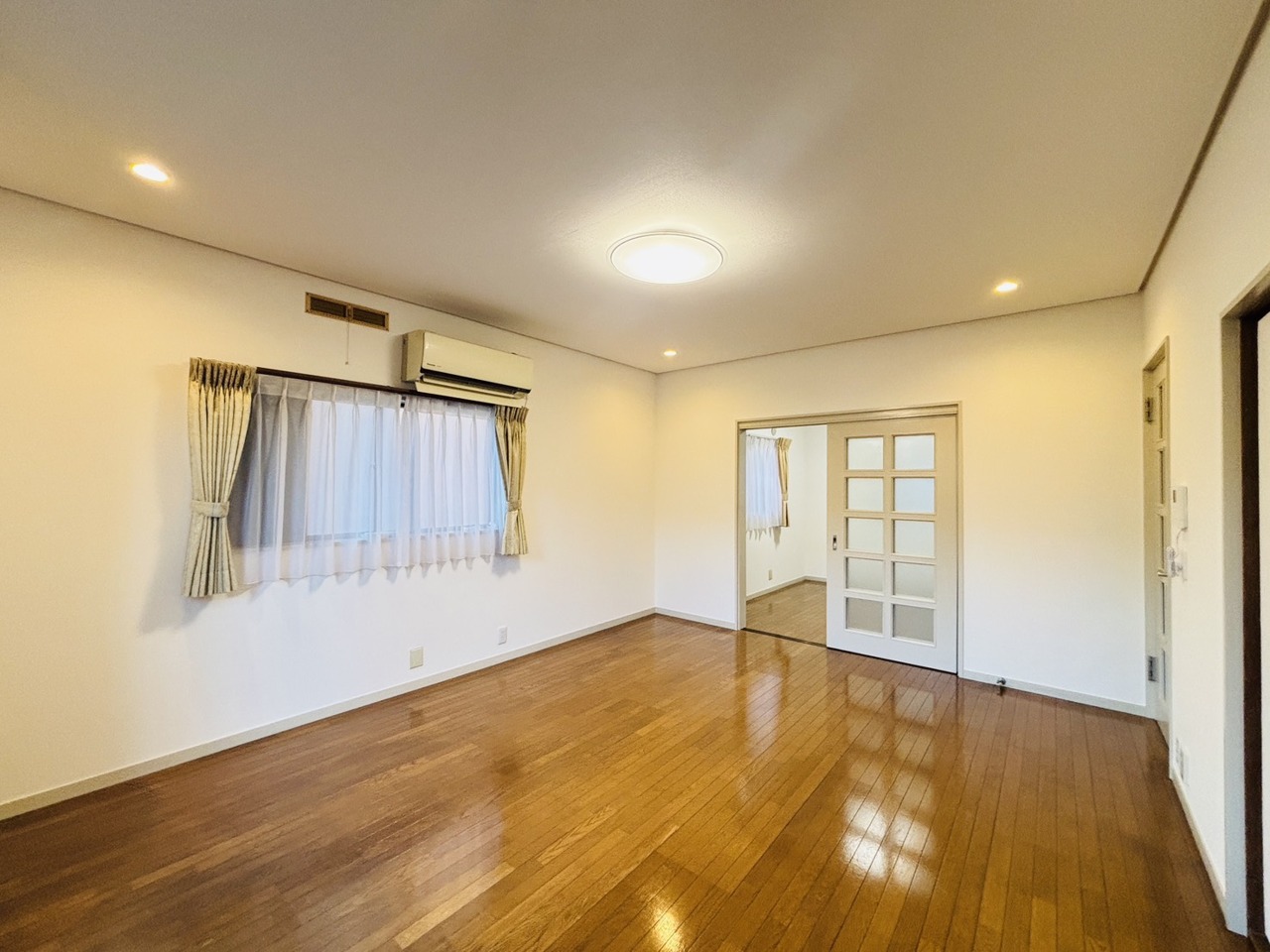 大きな開口部から明るい光が差し込む、日中の室内の明るさがこの部屋の魅力です。