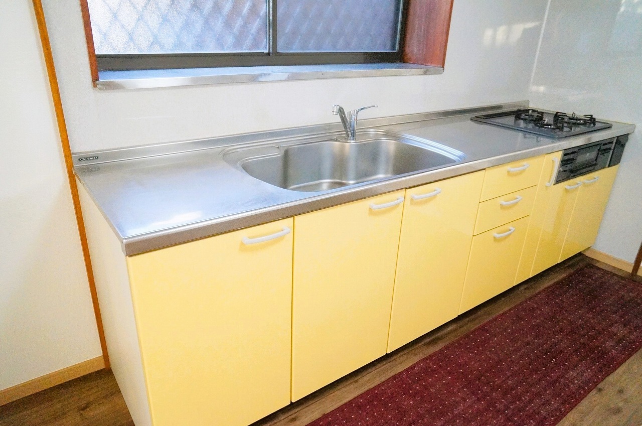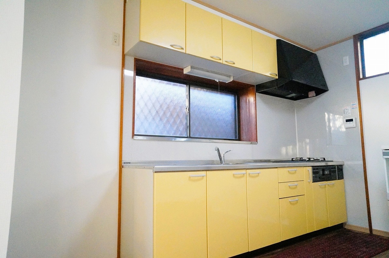 手を伸ばせばそこに収納が。安定した使用感の吊戸棚つきのキッチン空間。