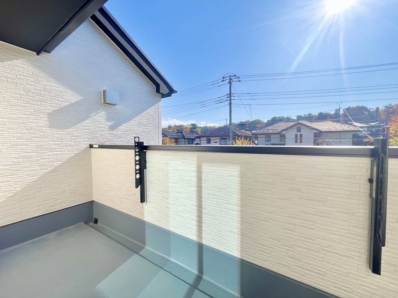 陽ざしが差込む明るいバルコニー。奥行きのあるバルコニーはお洗濯時に助かります。