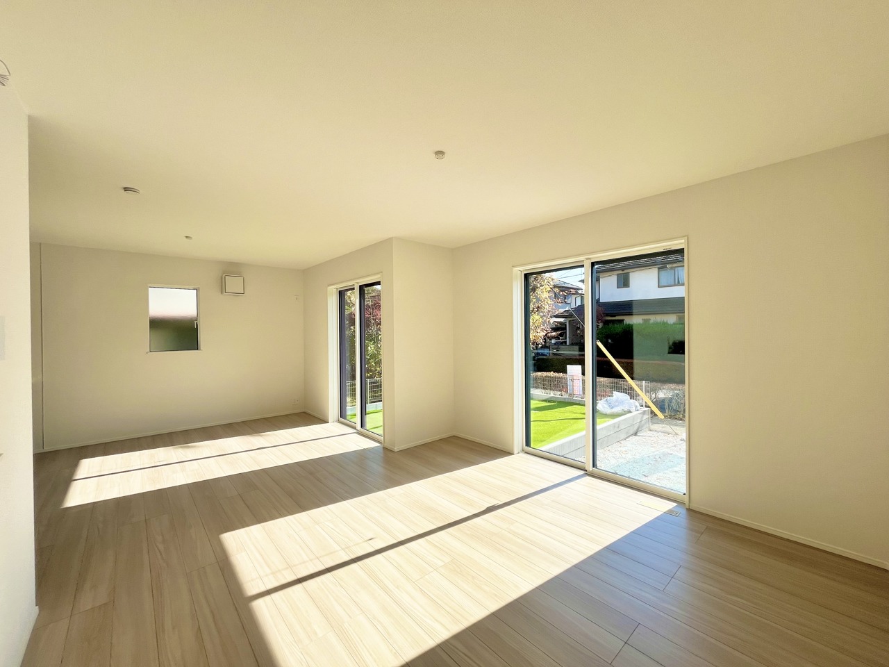 大きな開口部から明るい光が差し込むリビング。日中の室内の明るさがこの部屋の魅力です。