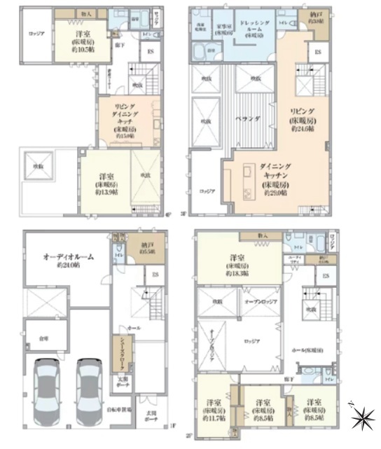 平坦地LDK15帖以上吹抜け床暖房ガスコンロシステムキッチン3口以上コンロ温水洗浄便座追焚機能浴室1坪以上リビング階段シューズインクローゼットビルトガレージ小学校800m以内