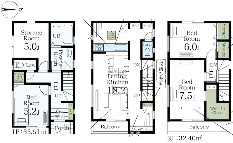 | 間取 | 3SLDK (LDK18.2帖、洋室7.5帖、洋室6帖、和室5.2帖、S5帖) | ||