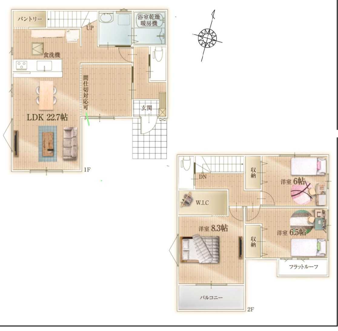 | 間取 | 3LDK (LDK22.7帖、洋室8.3帖、洋室6.5帖、洋室6帖) | ||