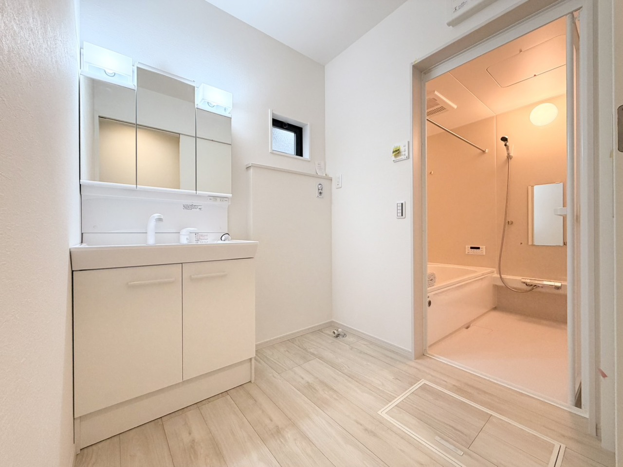 柔らかな木目調の床と、すっきりとした壁が調和する空間。