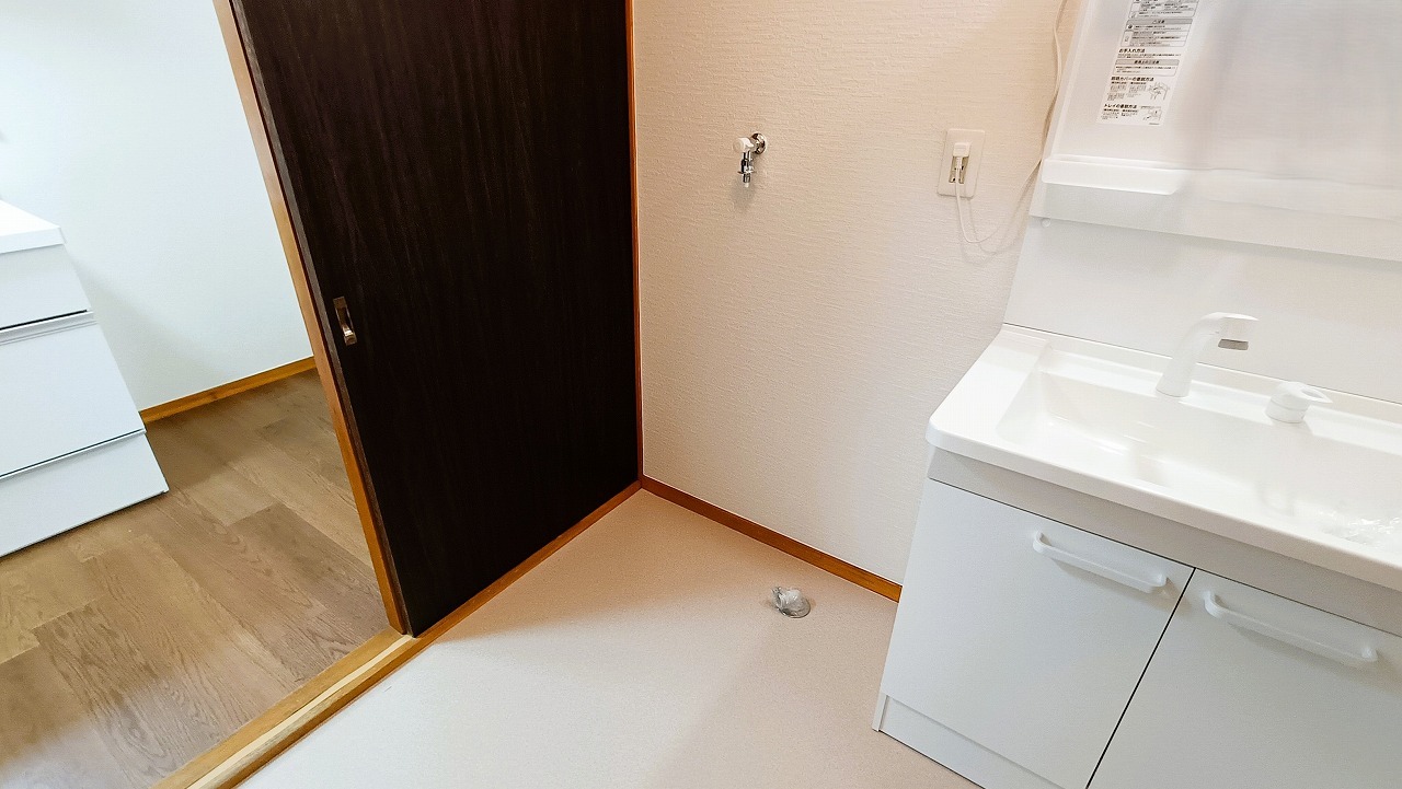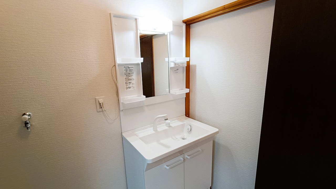 化粧台はやっぱり色が一番。シャワーヘッド付きの収納充実タイプです。