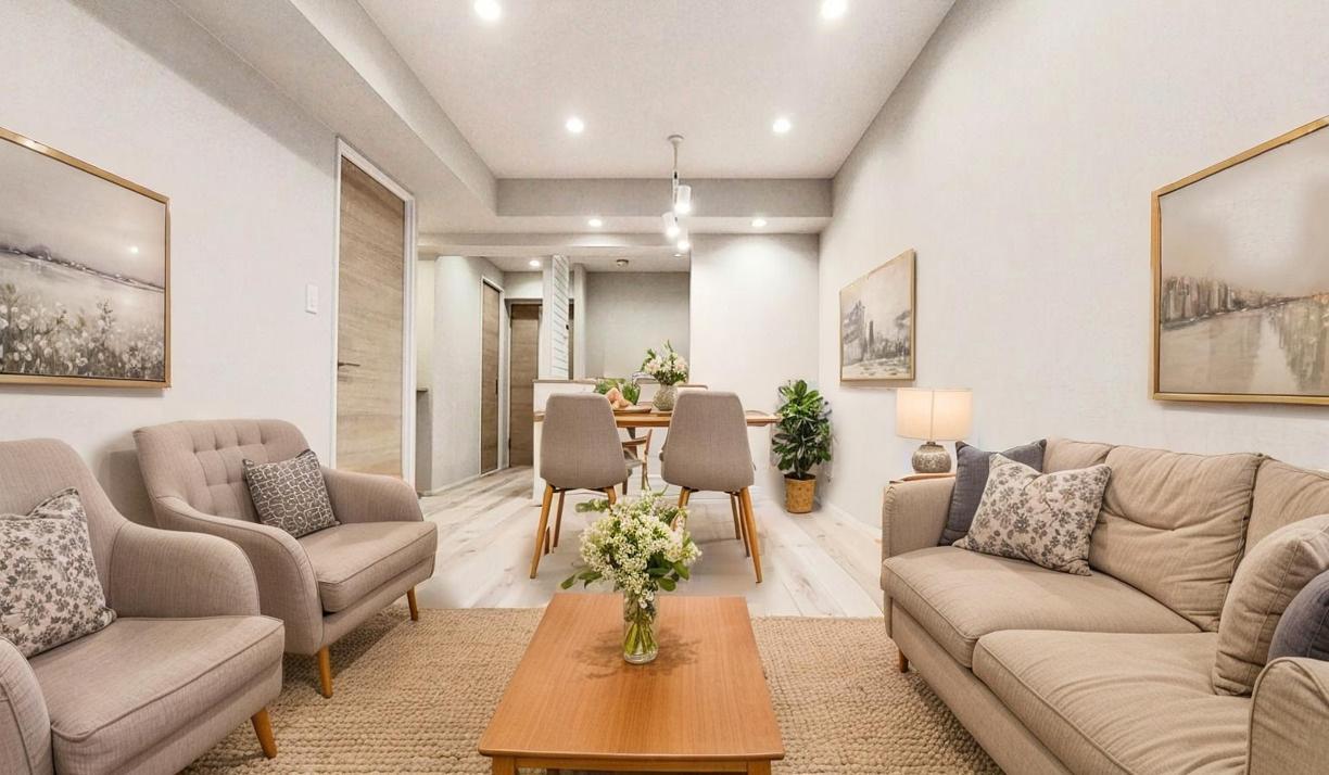 どんな家具にでも相性が良い清潔感ある白色調のクロスを採用。主張しすぎない配色、耐久性にも優れた床材は日々のメンテナンスも楽に、快適に過ごして頂けるよう考えられています。