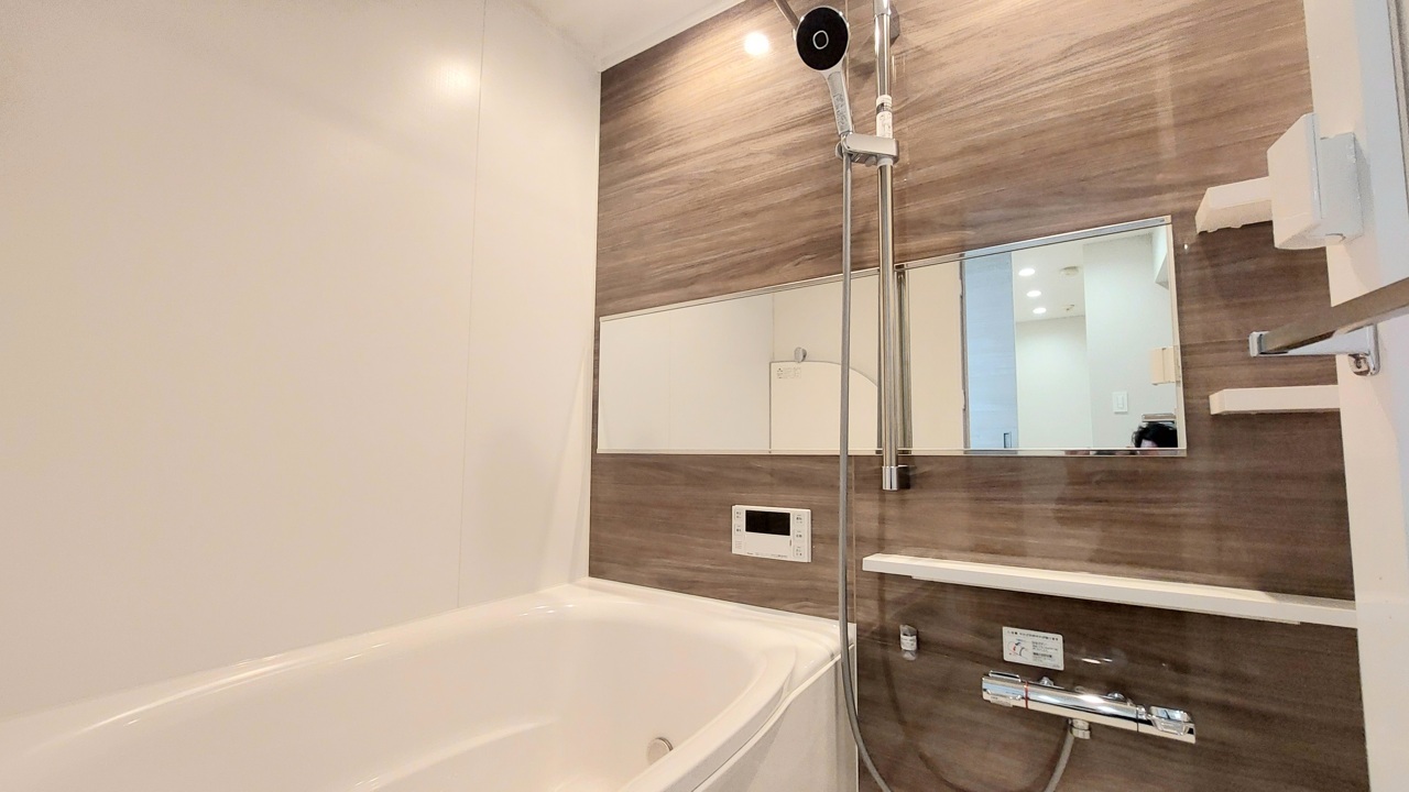 落ち着いた色味の浴室で1日の疲れをゆっくりと癒してください。