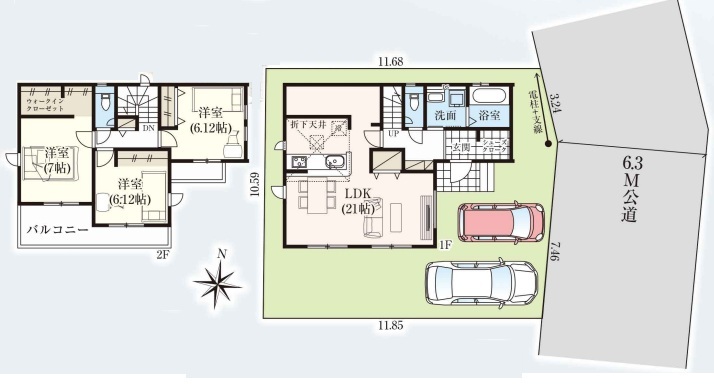 | 接道 | 東側6.3M公道に7.46M接道 | 小学校区 | 春日部市立牛島小学校(1600m) |