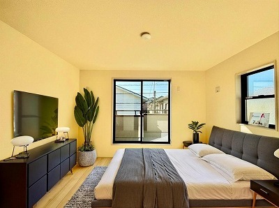 ゆとりの7.5帖ある寝室、陽光が入りやすく朝の目覚めも気持ち良く起こしてくれます。