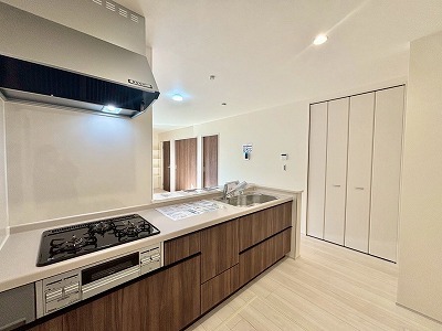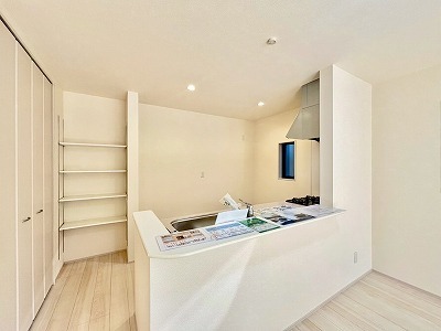 キッチン横にはたくさんの収納スペースがございます。食材などの収納に便利です。
