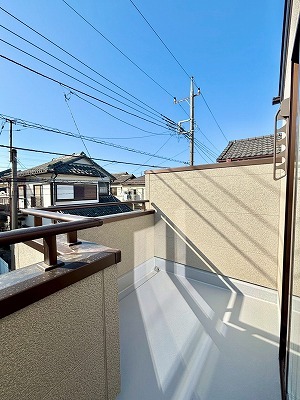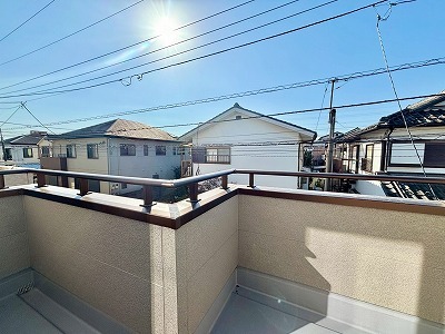 陽ざしが差込む明るいバルコニー。奥行きのあるバルコニーはお洗濯時に助かります。