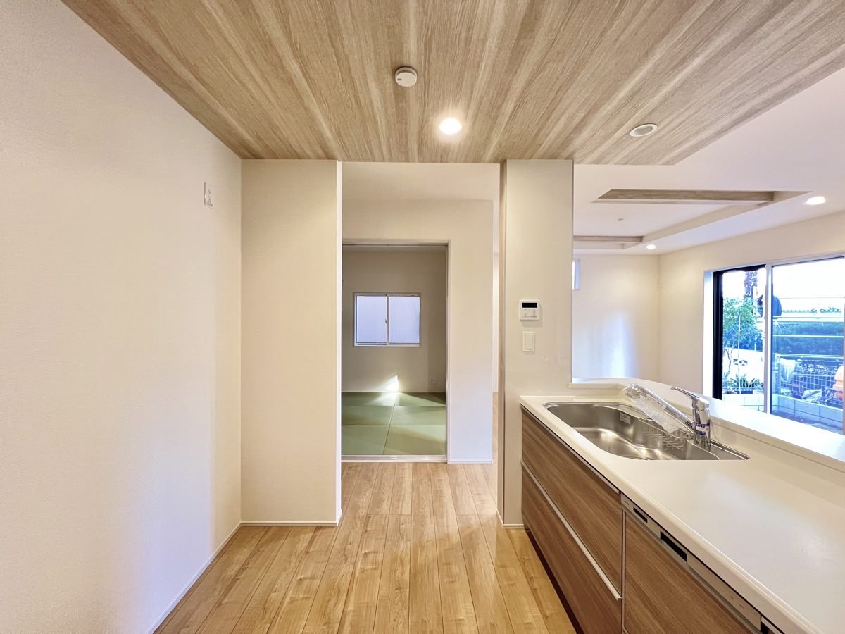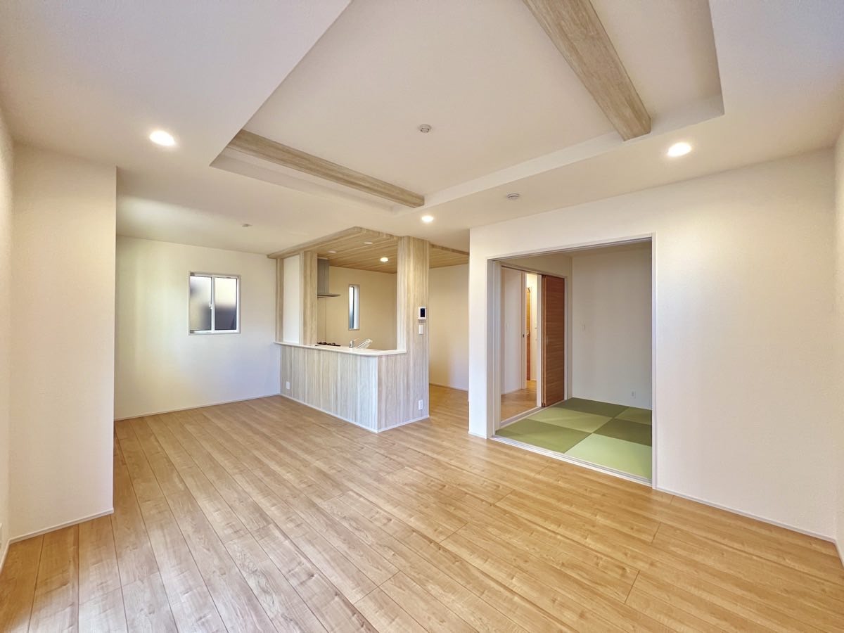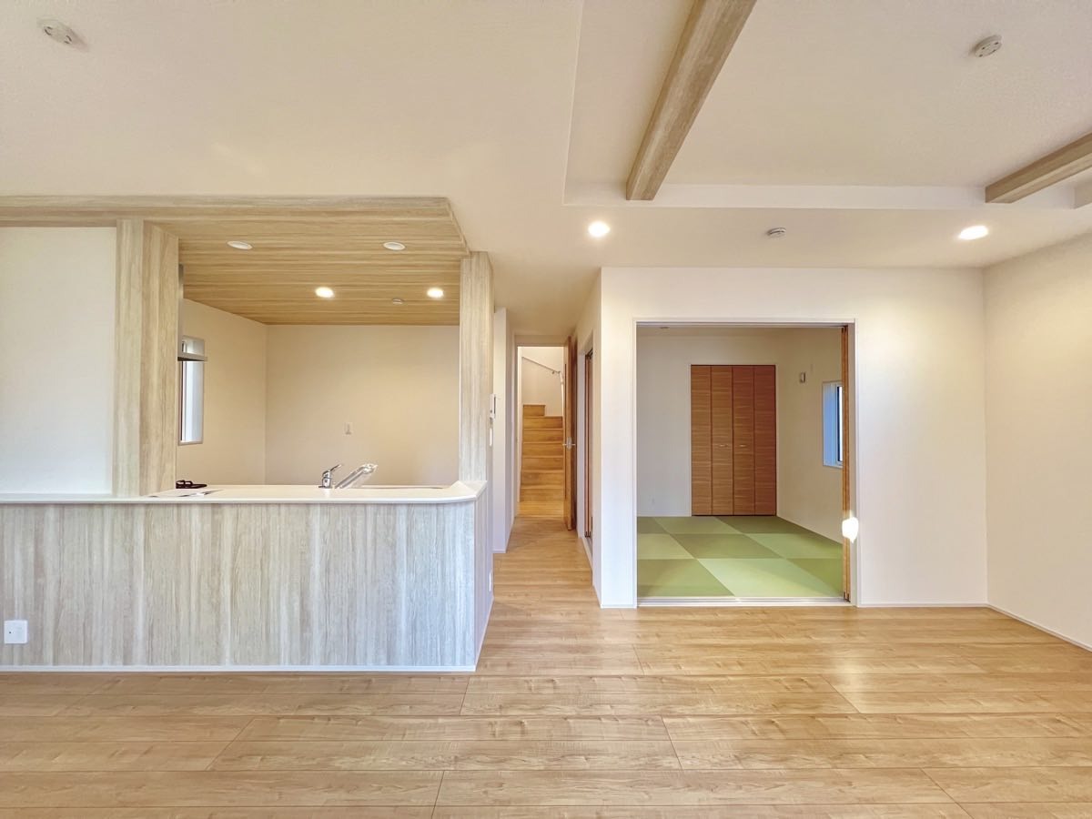 広々とした空間に温かみのある木目が心地よい、開放感あふれる住まい。