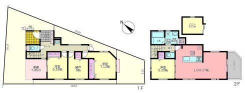 | 間取 | 3SLDK + ロフト6.21平米 (LDK17帖、洋室7.12帖、洋室5.25帖、洋室5.25帖、S5帖) | ||