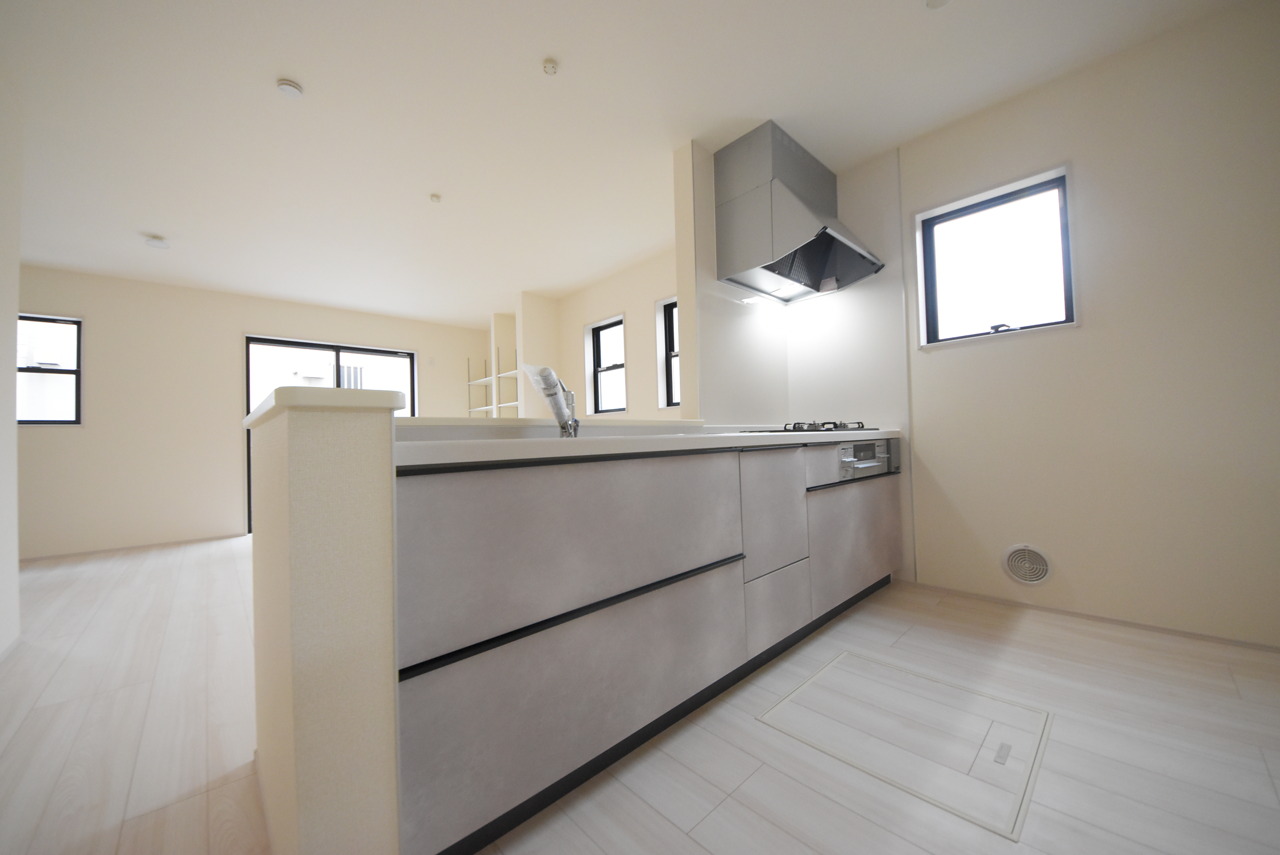 キッチンはオープンカフェスタイルだからリビングとの一体感はバッチリ。毎日のお料理時間も楽しくなりそうです。