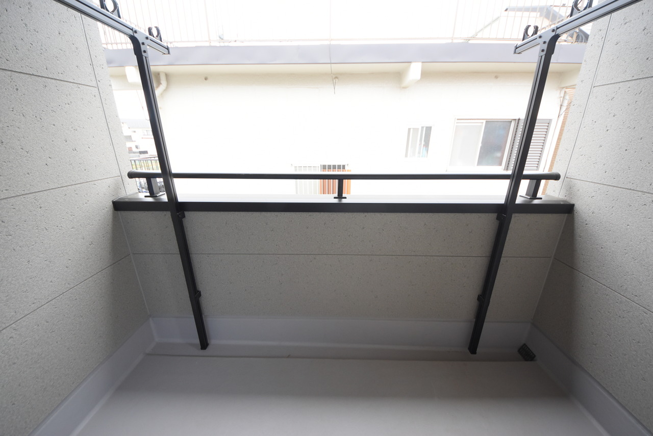 陽ざしが差込む明るいバルコニー。奥行きのあるバルコニーはお洗濯時に助かります。
