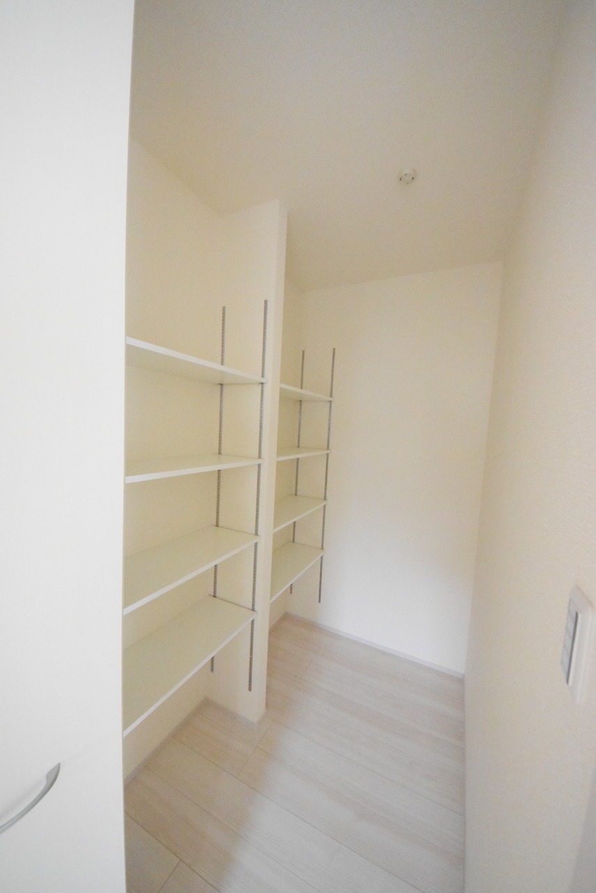 大容量のパントリーがございますので、非常食や食品のストックも沢山置けます。