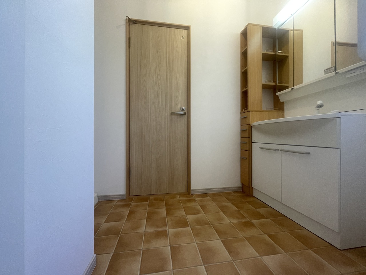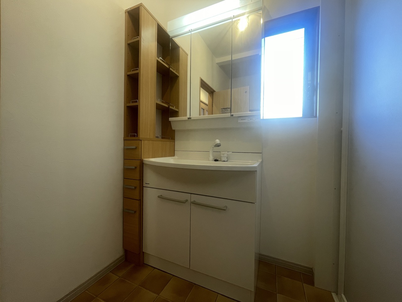 洗面化粧台は清潔感の漂うホワイトをベースカラーに、シンプルなデザインで。