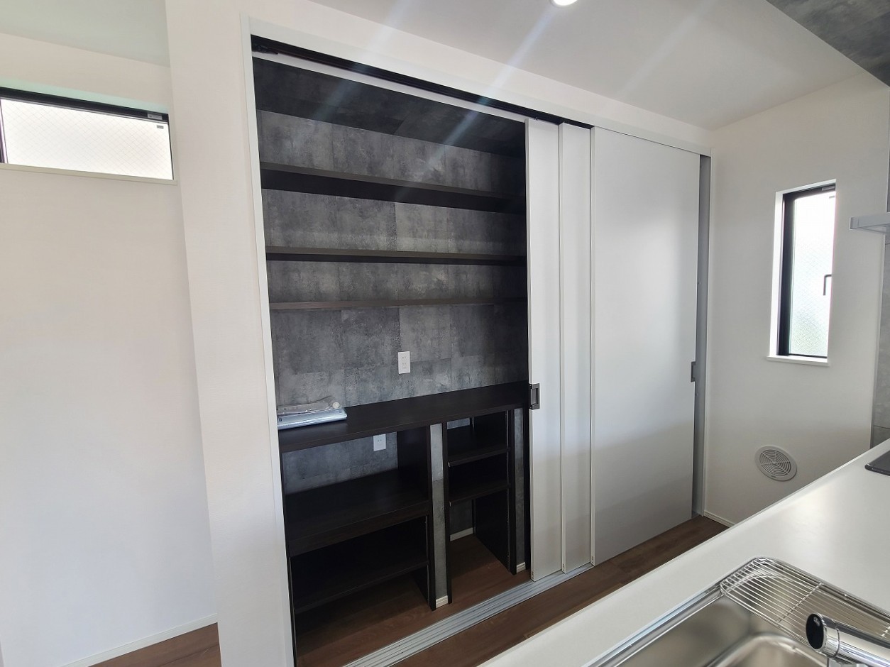 大容量のパントリーがございますので、非常食や食品のストックも沢山置けます。