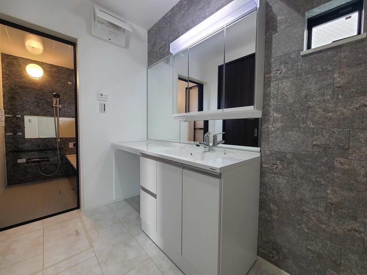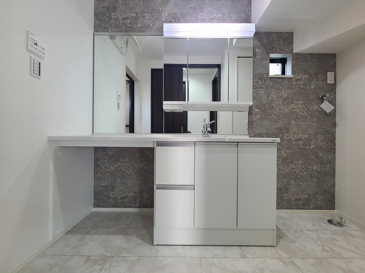 ゆとりの洗面スペースで朝の身支度もスムーズに行えます。