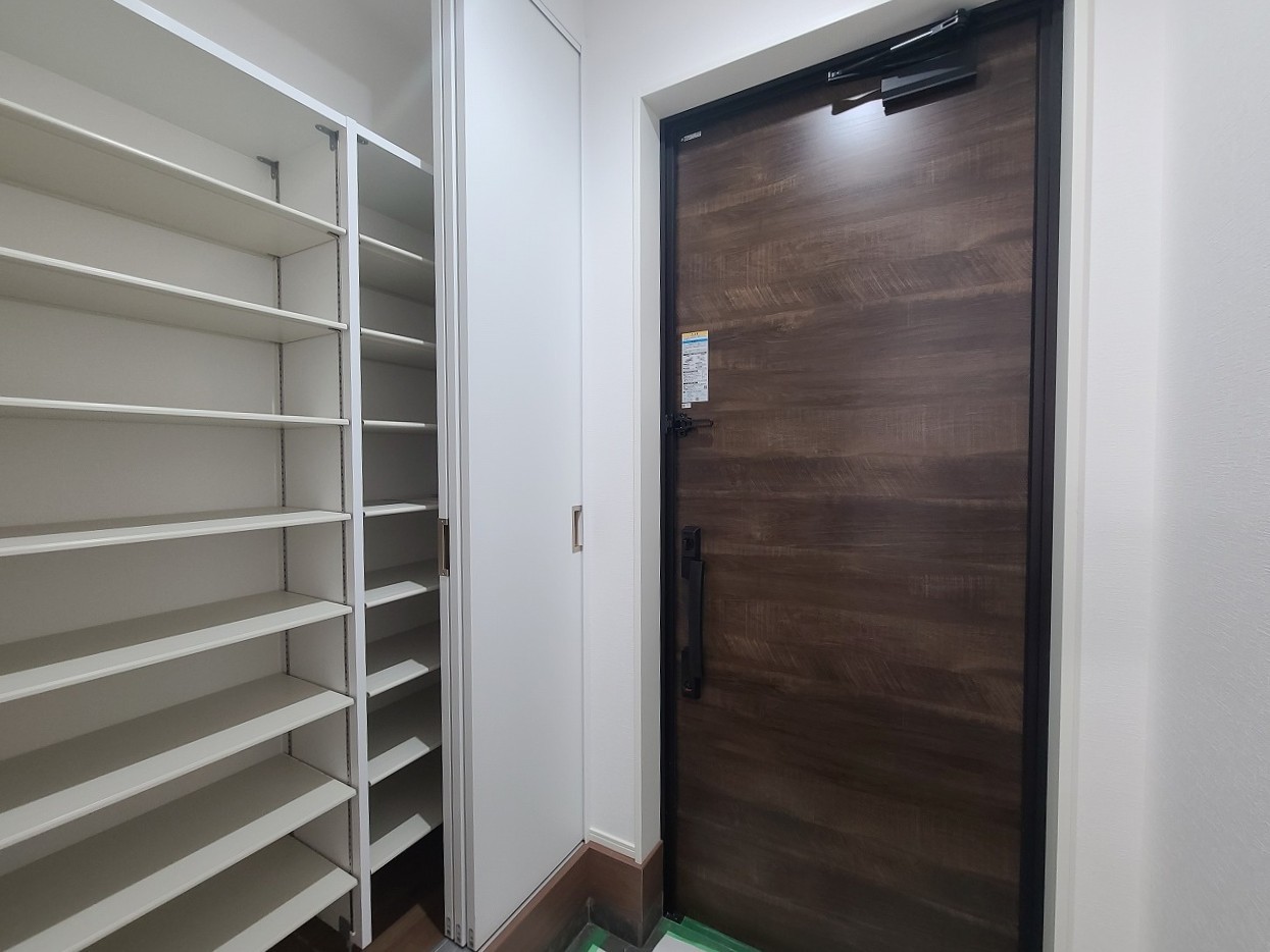 明るく開放的な玄関、靴の脱ぎ履きもしやすく、収納も豊富でご家族皆様の靴をスッキリ収納できます。