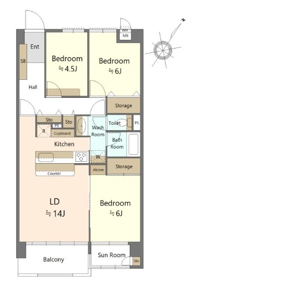 | 間取 | 3LDK (LDK14帖、洋室6帖、洋室6帖、洋室4.5帖) | ||