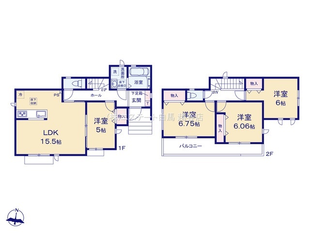 | 間取 | 4LDK (LDK15.5帖、洋室6.75帖、洋室6.12帖、和室6帖、洋室5帖) | ||