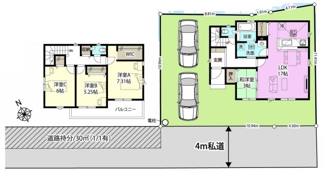 | 土地面積 | 161.95m² 公簿 (私道30m²別に有) | ||