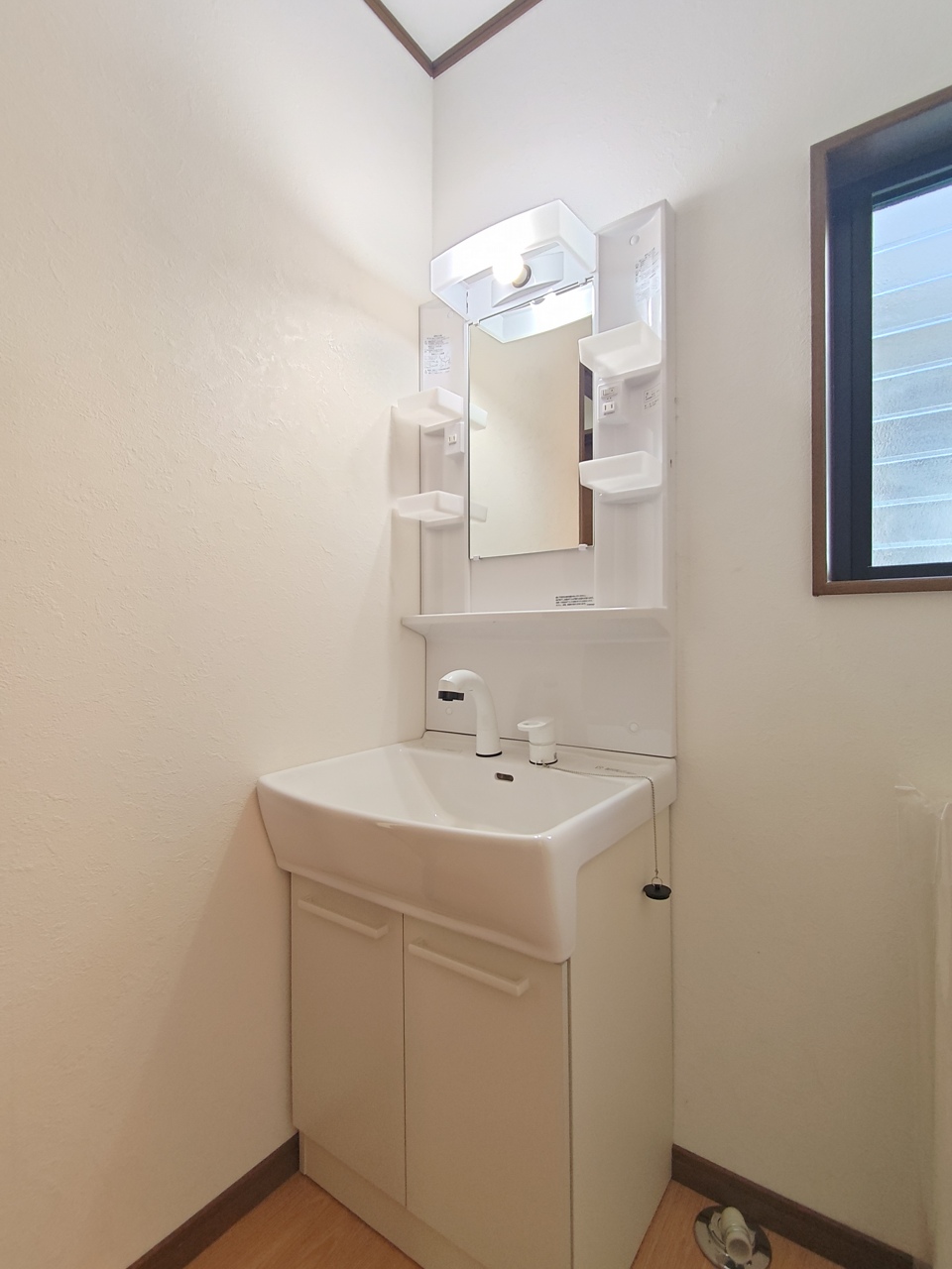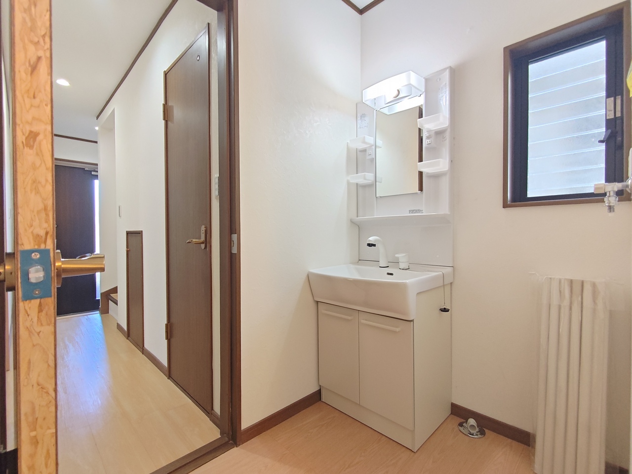 収納付きの洗面化粧台を新設しました。