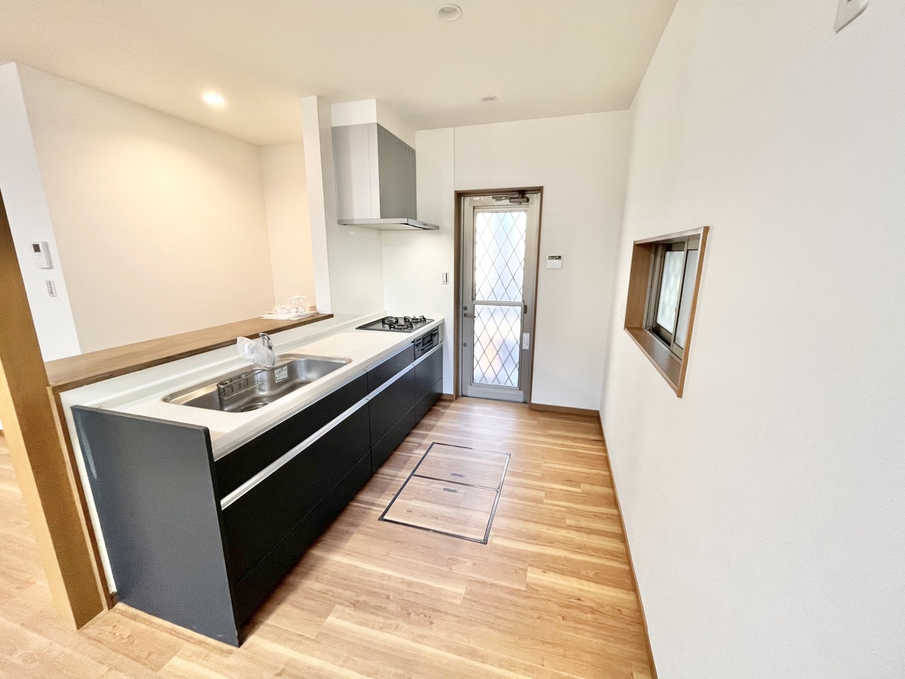 手元は隠しながら、 リビングとも会話できるセミオープンキッチン。