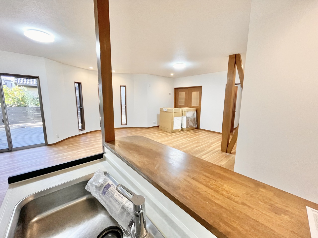 キッチンからみたリビングの様子です。
