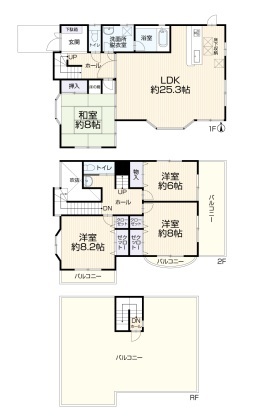 | 間取 | 4LDK (LDK25.3帖、和室8帖、洋室8.2帖、洋室8帖、洋室6帖) | ||