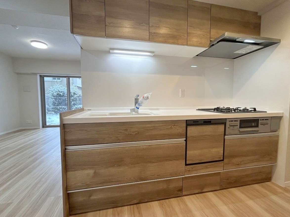 キッチン、床材、クロスが新品に交換済み。中古ながらも築年数を感じさせません。