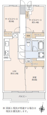 | 間取 | 1SLDK (LDK12.2帖、洋室6帖、S5.4帖、S5帖) | ||