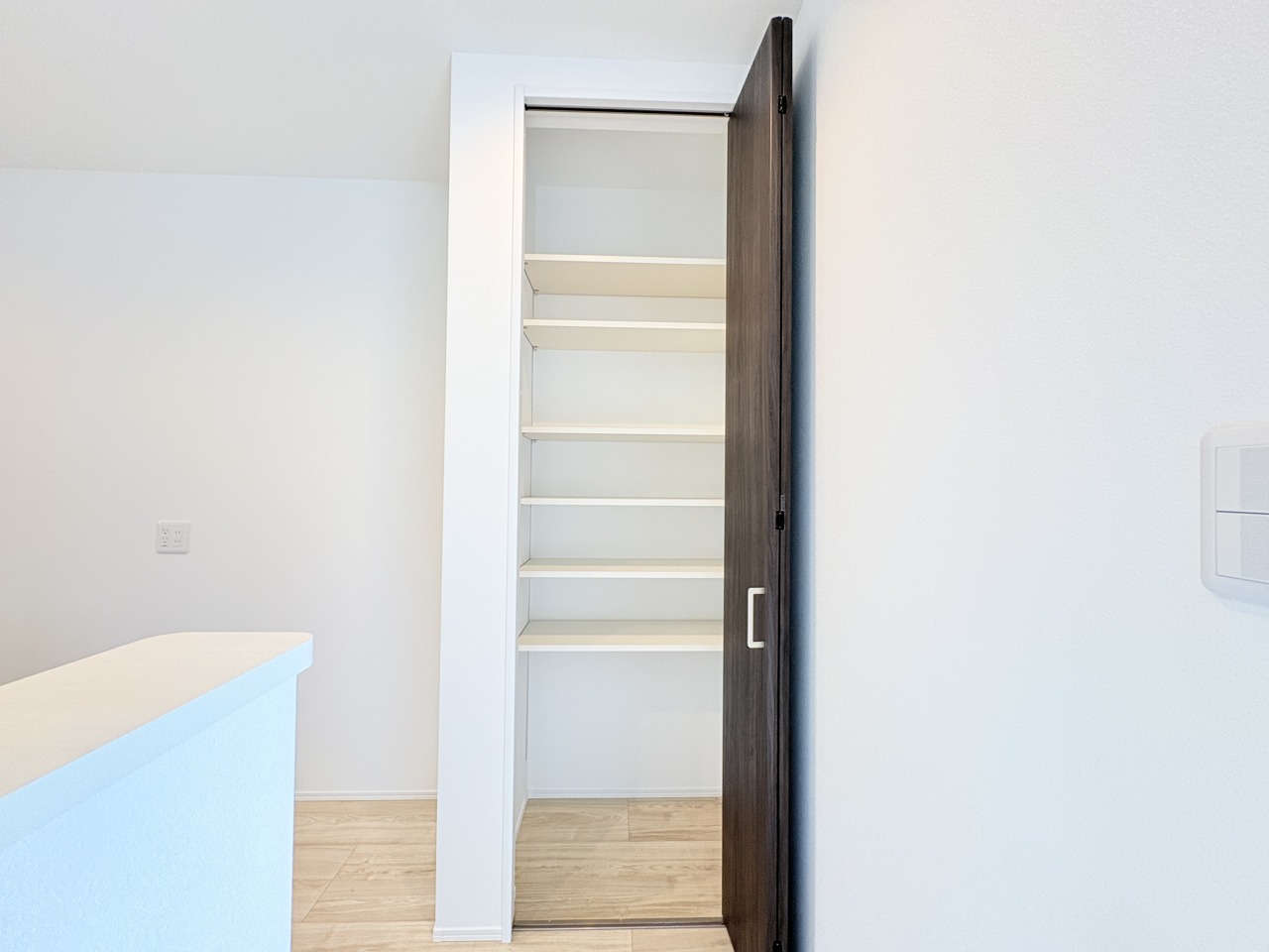 大容量のパントリーがございますので、非常食や食品のストックも沢山置けます。