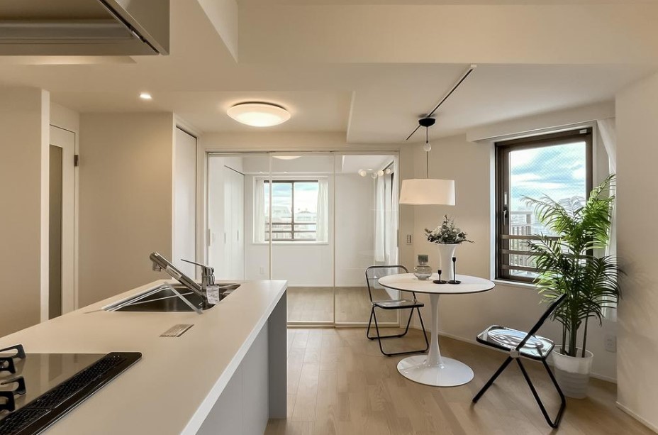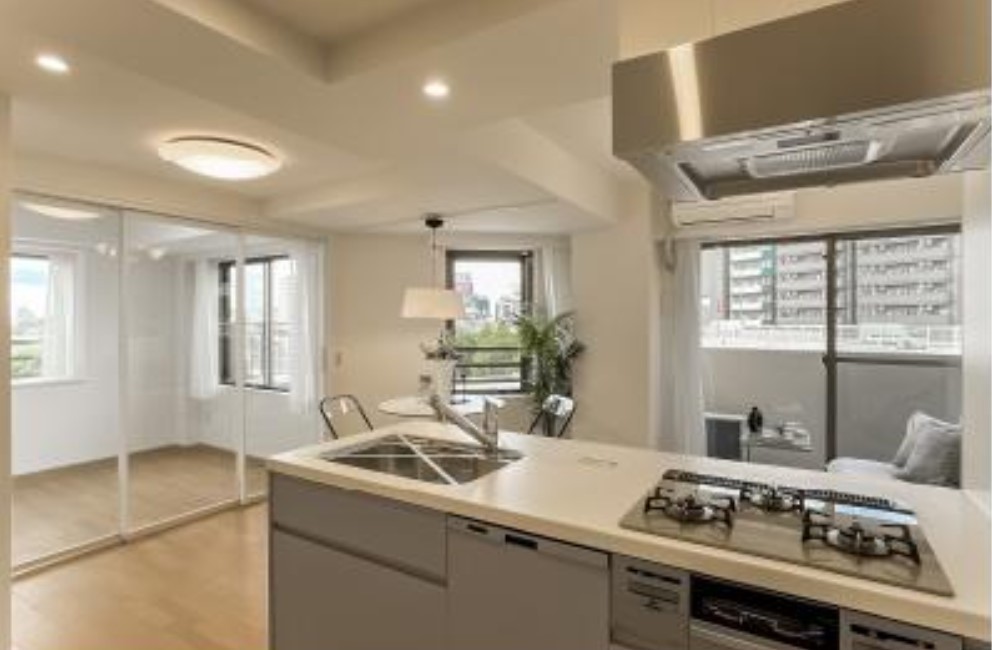 開放的な角部屋住戸、室内リノベーション物件。新耐震基準マンション、長期修繕計画あり、管理体制良好です。