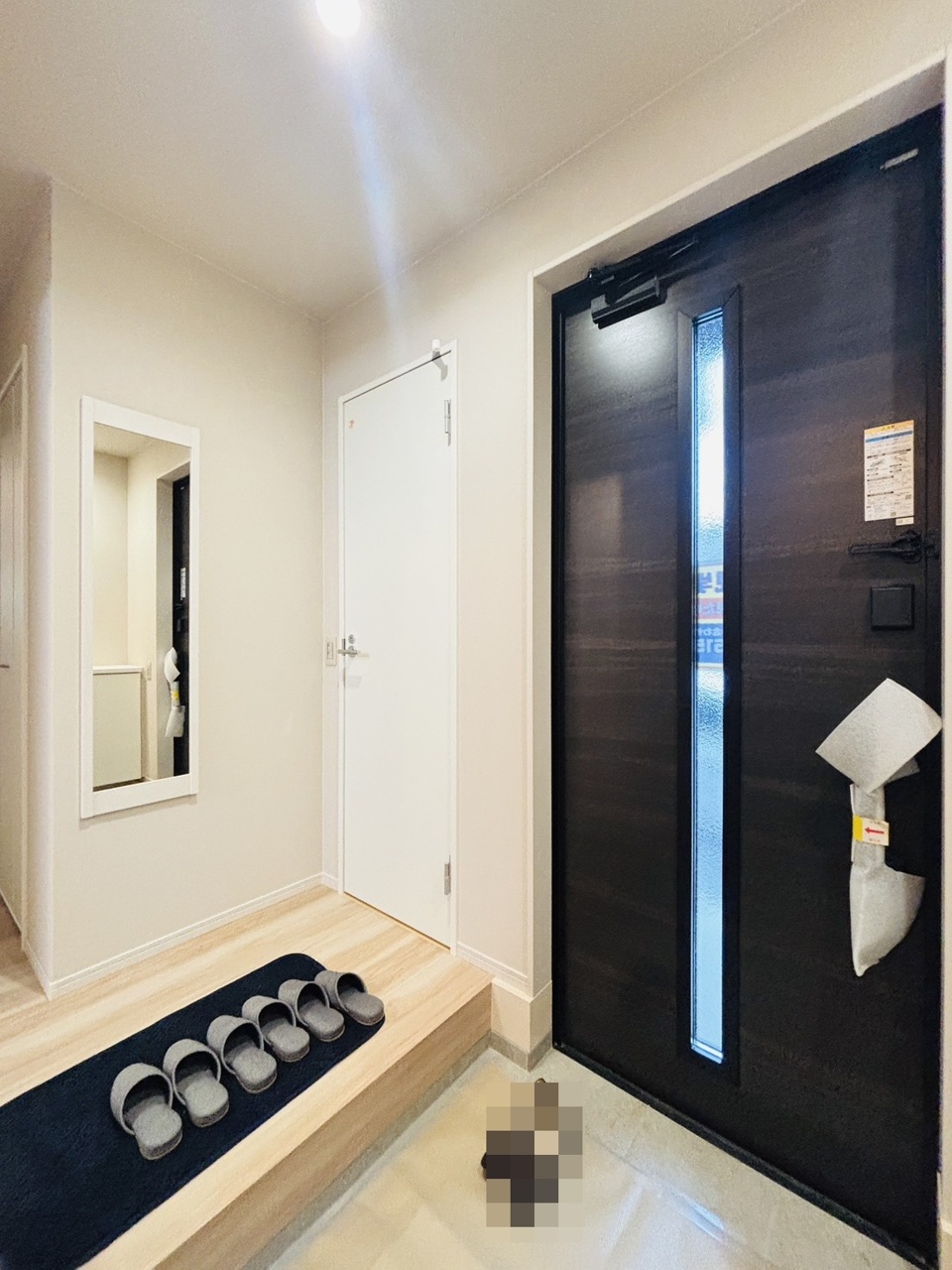 お宅の顔となる明るく開放的な玄関。ご家族皆様様の靴を収納できるスペースと全身鏡があり、お出掛け前に身だしなみチェックもできます。