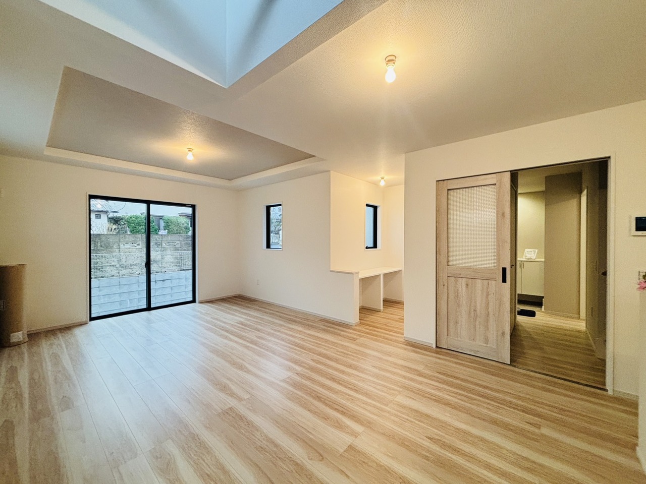 大きな開口部から明るい光が差し込む、日中の室内の明るさがこの部屋の魅力です。