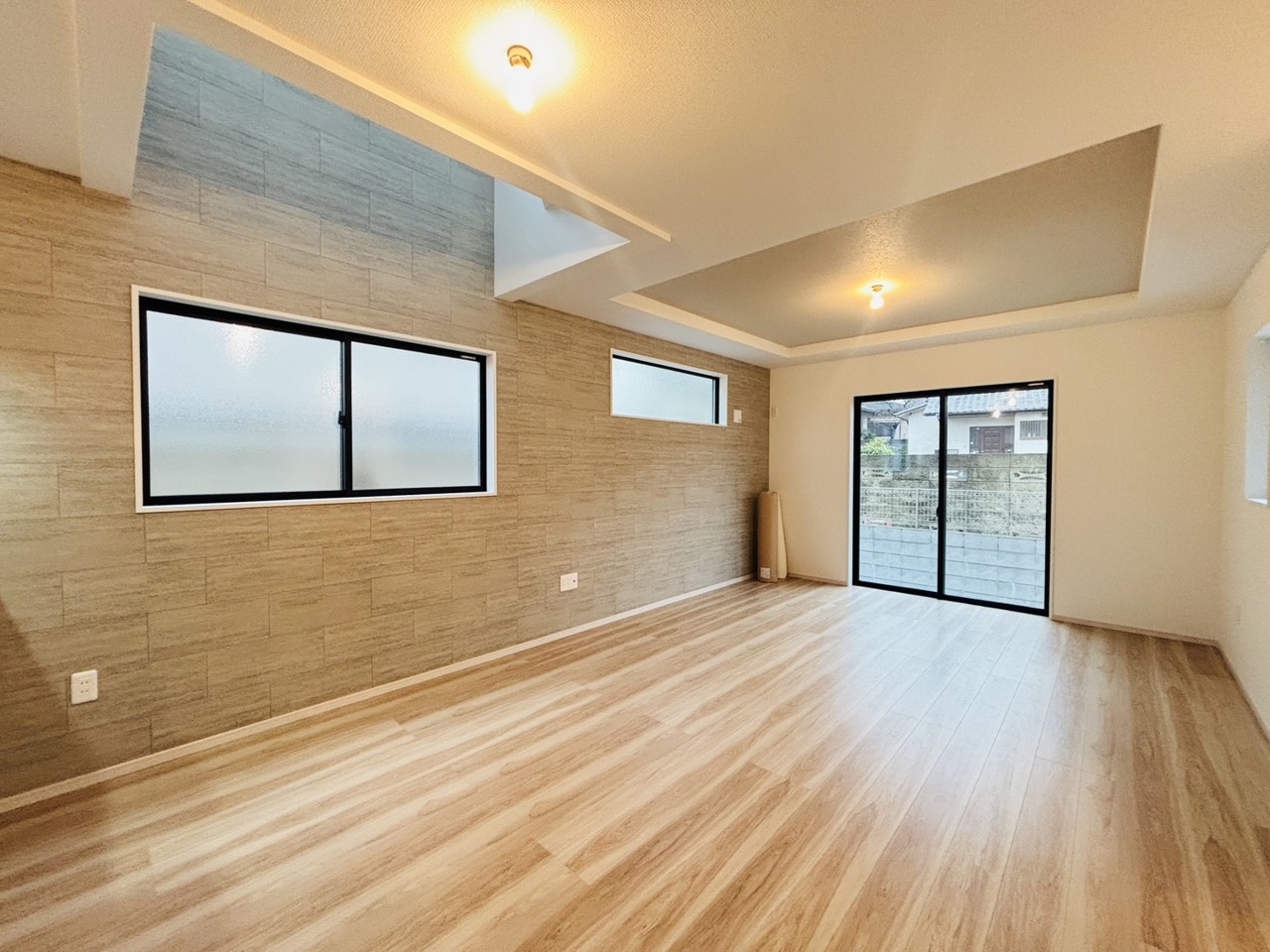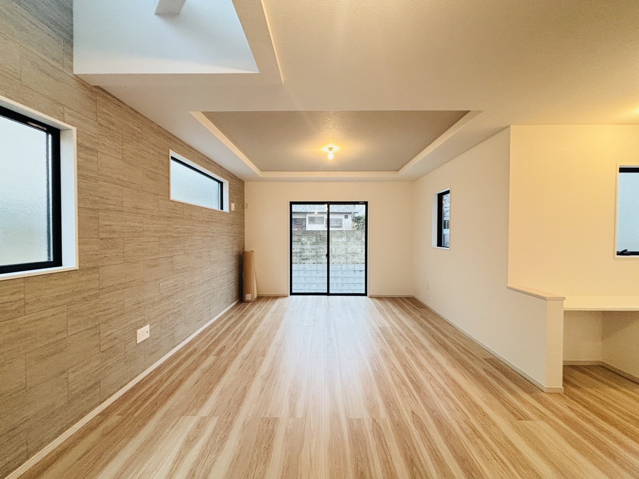 大きな開口部から明るい光が差し込むリビング。日中の室内の明るさがこの部屋の魅力です。