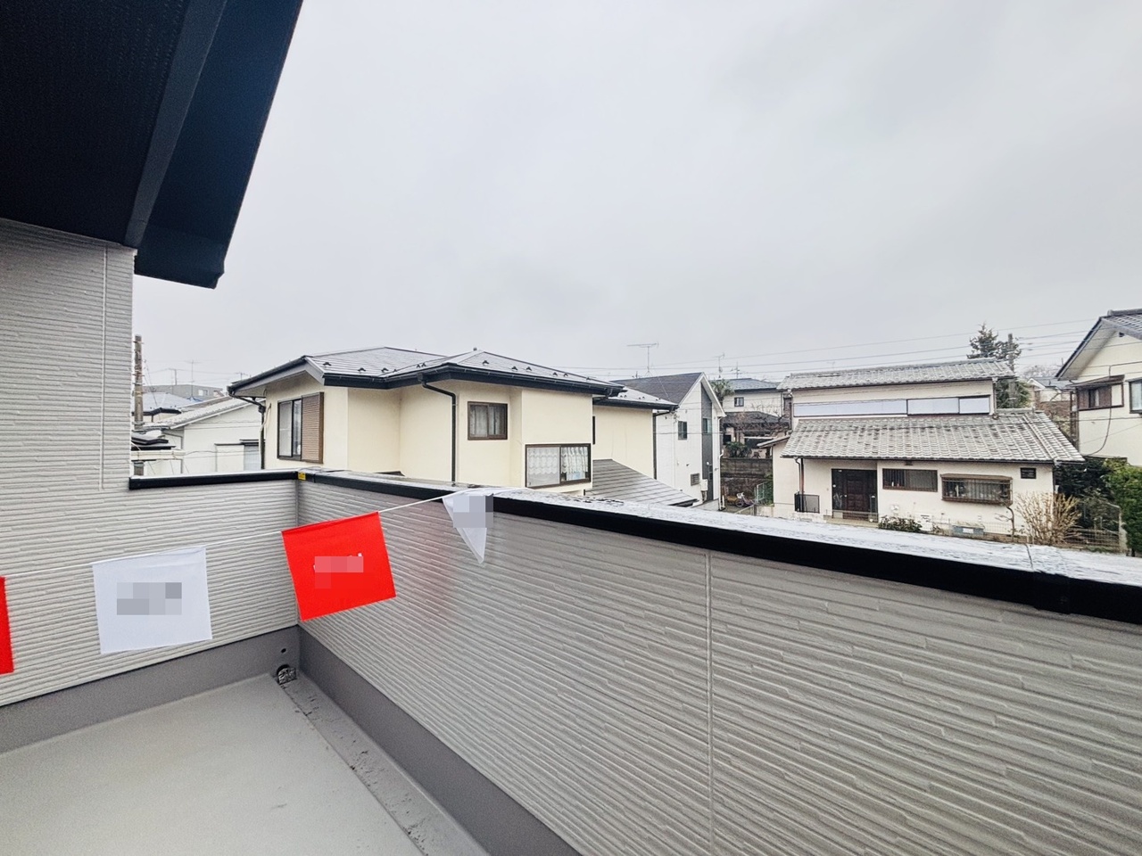 陽ざしが差込む明るいバルコニー。奥行きのあるバルコニーはお洗濯時に助かります。