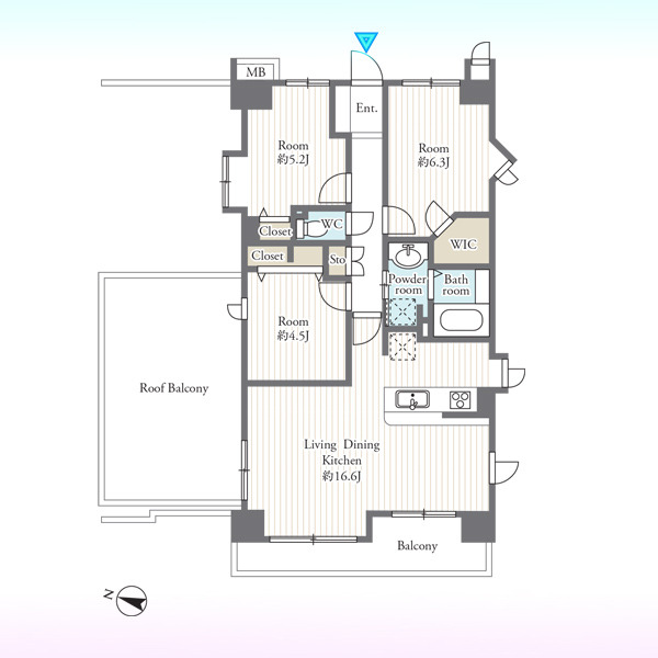 | 間取 | 3LDK (LDK16.6帖、洋室6.3帖、洋室5.2帖、洋室4.5帖) | ||