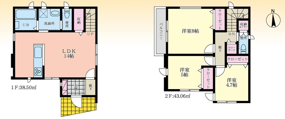| 間取 | 3LDK (LDK14帖、洋室8帖、洋室5帖、洋室4.7帖) | ||