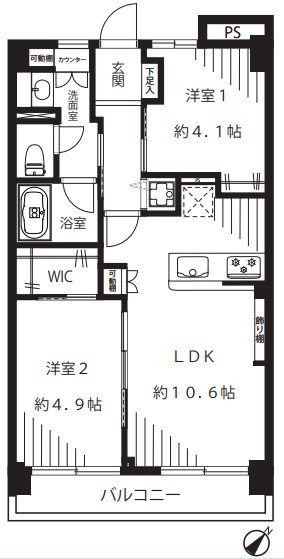 | 間取 | 2LDK (LDK10.6帖、洋室4.9帖、洋室4.1帖) | ||