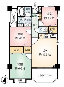 | 間取 | 3LDK (LDK10.3帖、和室6.6帖、洋室5.0帖、洋室3.9帖) | ||