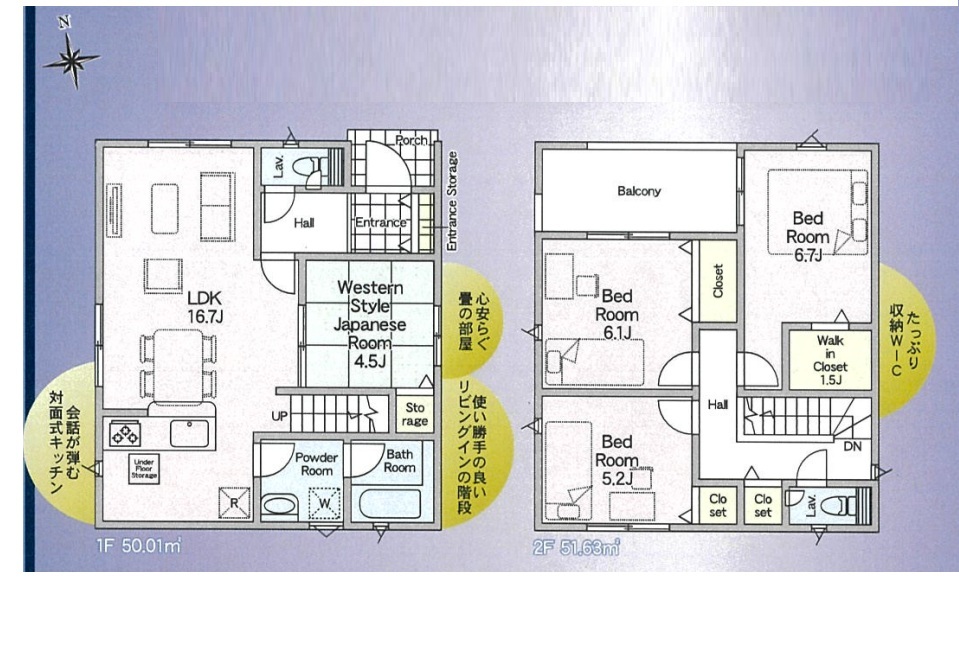 | 間取 | 4LDK (LDK16.7帖、和室4.5帖、洋室6.7帖、洋室6.1帖、洋室5.2帖) | ||