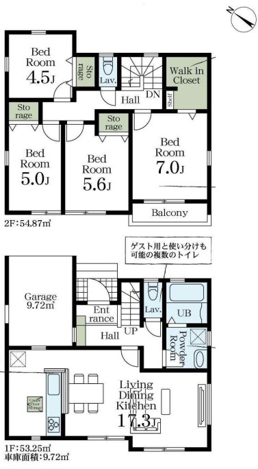 | 建物面積 | 108.12m² 実測 (車庫面積9.72平米) | ||
