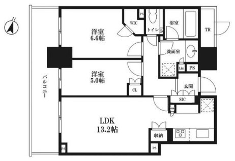 | 間取 | 2LDK (LDK13.2帖、洋室6.6帖、洋室5.0帖) | ||