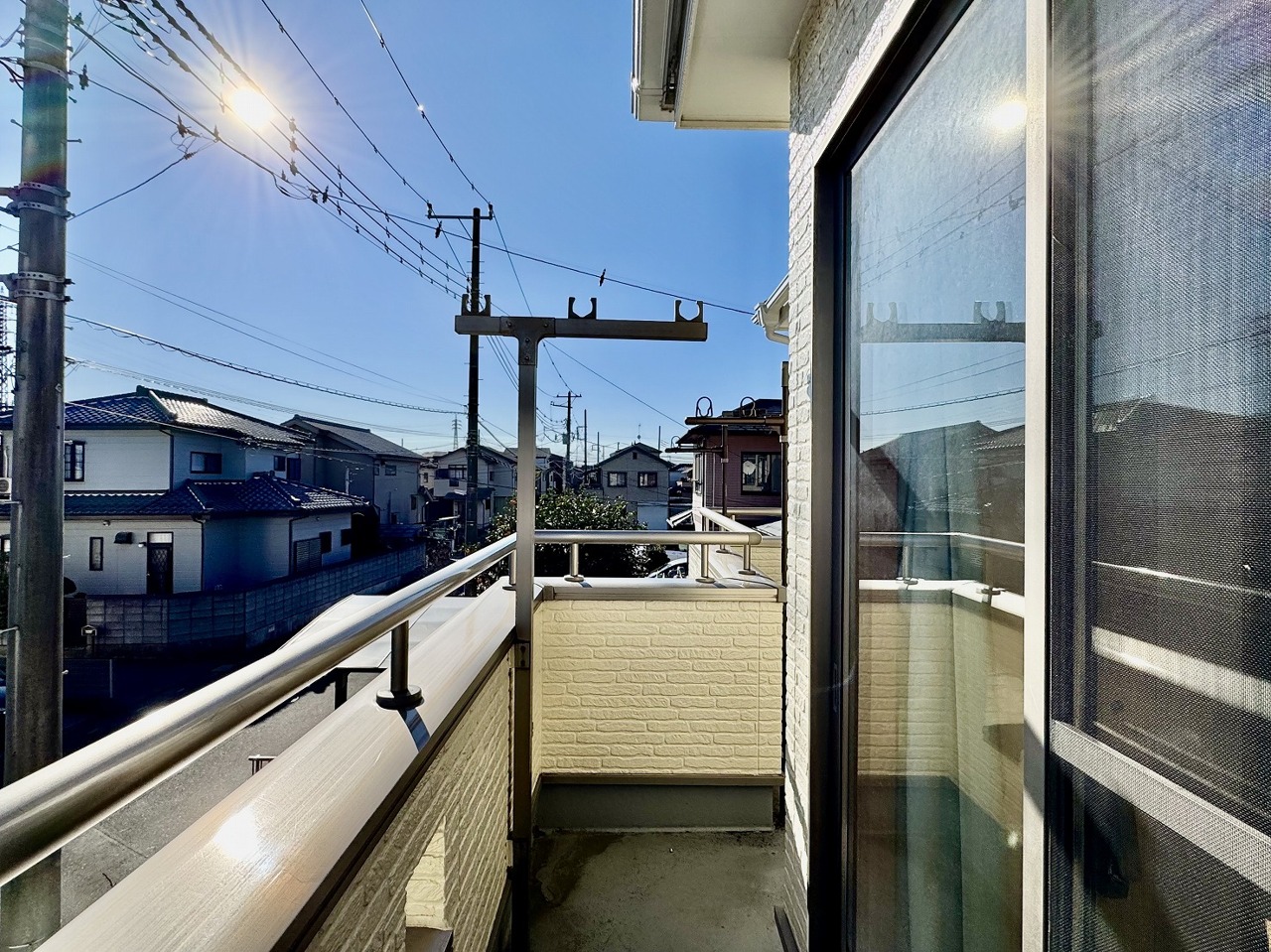 住宅街の2階南向きのお部屋です。日当たりはご覧のとおり。