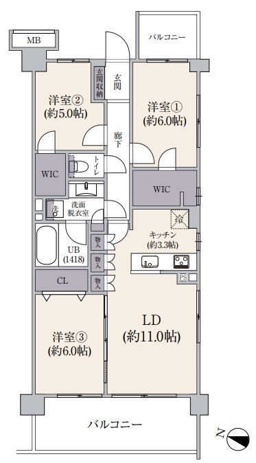 | 間取 | 3LDK (LD11帖、K3.3帖、洋室6帖、洋室6帖、洋室5帖) | ||
