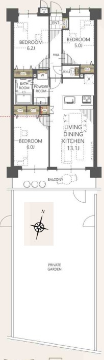 | 間取 | 3LDK (LDK13.1帖、洋室6.2帖、洋室6帖、洋室5帖) | ||